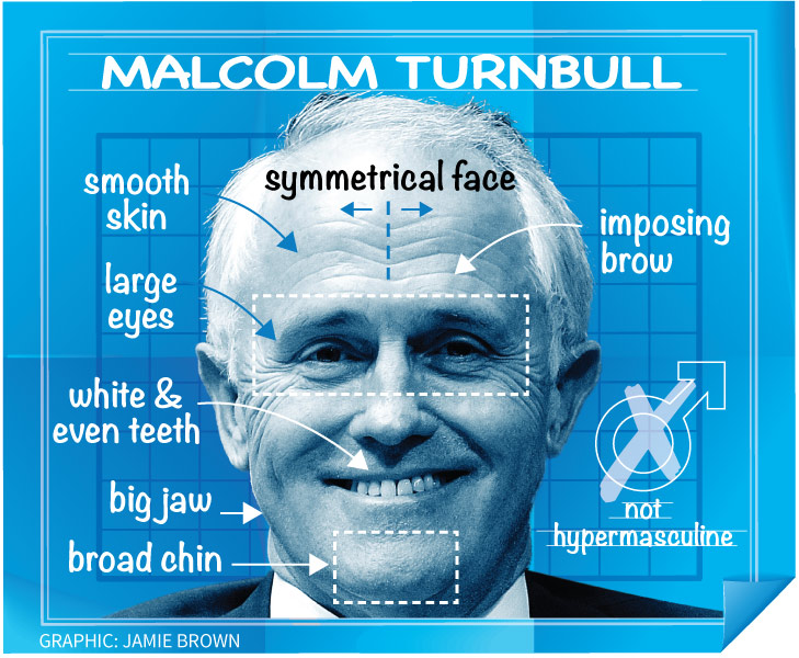 “He’s got an attractive face, but it’s also a competent sort of face. I would not call it a hyper-masculine sort of face, whereas Tony Abbott’s is more craggy, with a prominent nose – the sort of things that suggest dominance.