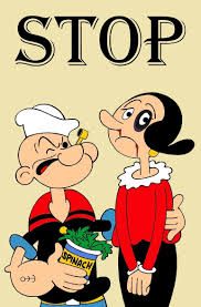 A trickle of blood comes from Olive Oil’s nose and mouth as Popeye holds her around the waist.